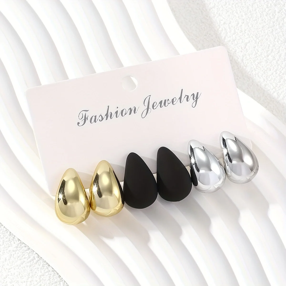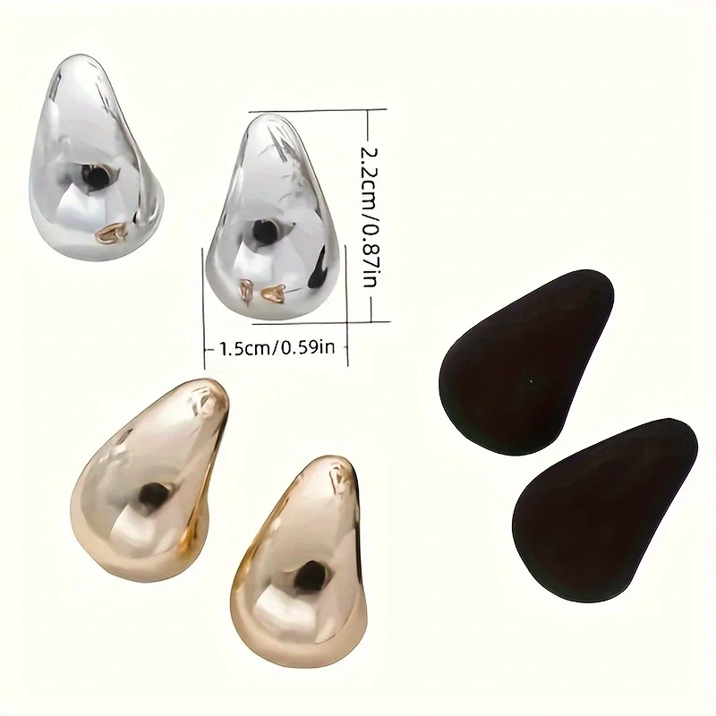 • Vintage Multi Color Water Drop Stud Earrings Fashion Punk Smooth Metal Earrings Women's Trendy Party Jewelry