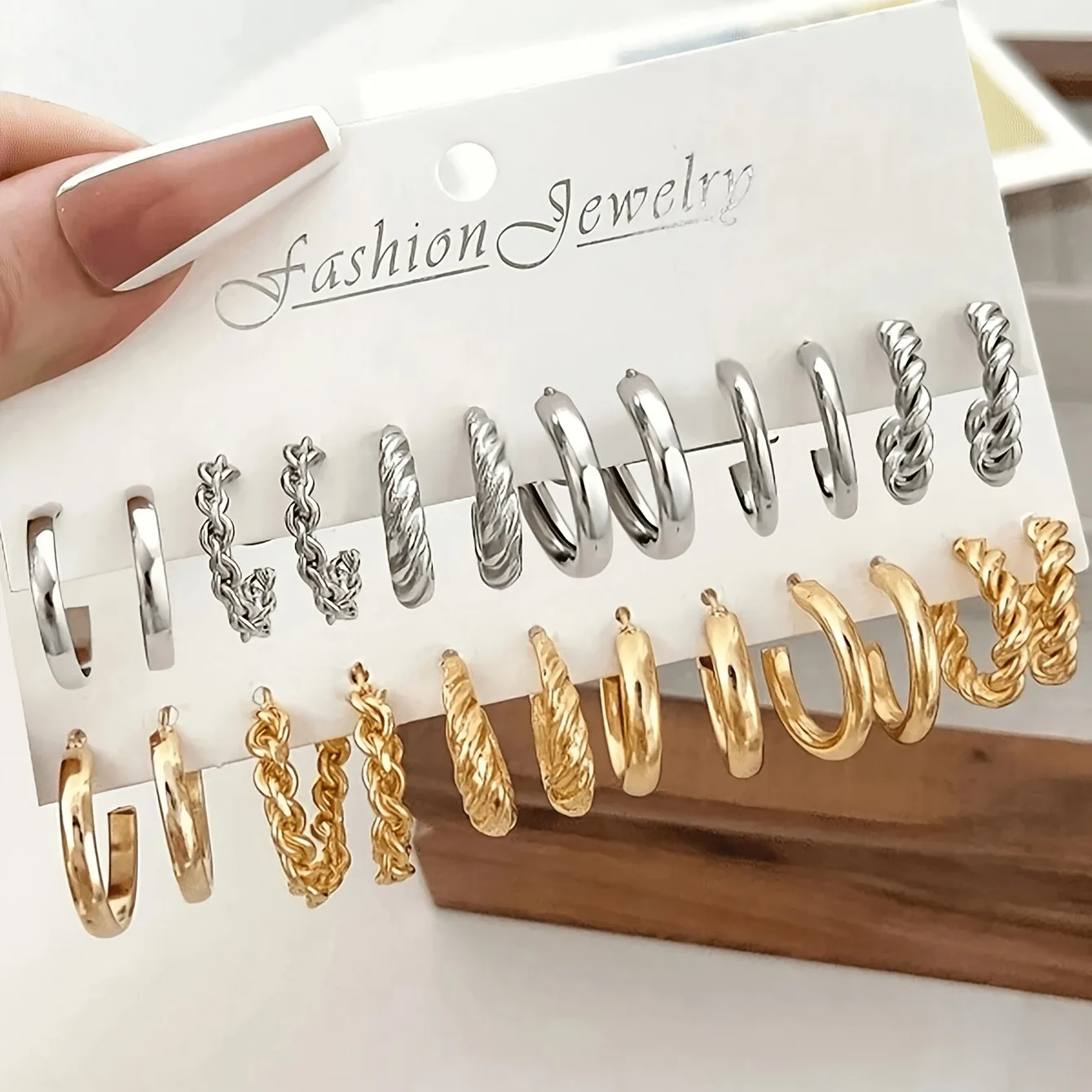 • Punk Cross Twisted C-shaped Stud Earrings Fashion Geometric Metal Round Earring Set Women's Vintage Aesthetic Jewelry Gift