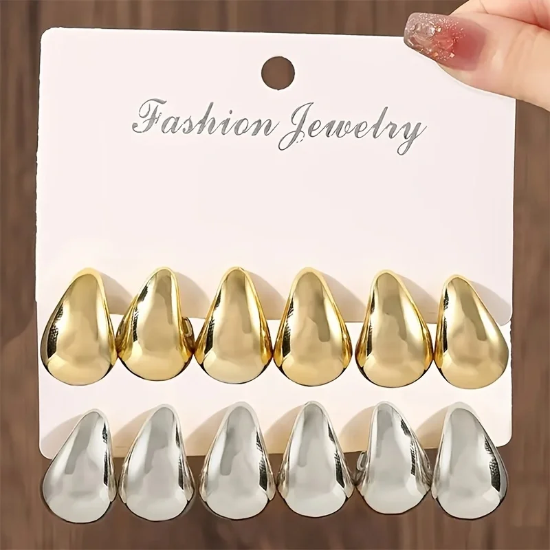 • Minimalist 3-Pair Gold Color Water Drop Stud Earrings Retro Aesthetic Tear Drop Earring Set Women's Trendy Party Daily Jewelry